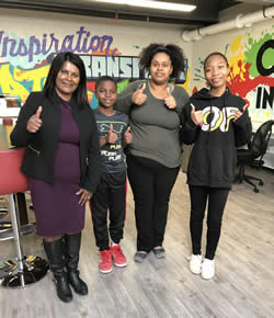 Pramilla Ramdahani (CEO, Community Innovation Lab, Whitby), Alekzander Dunn, Nakleea Dunn (Mom), Arianna Dunn