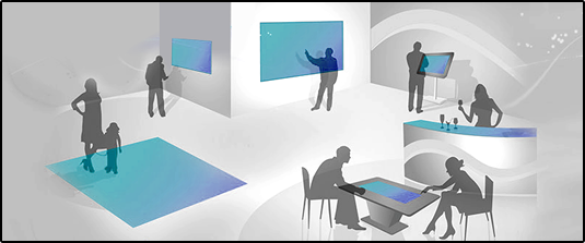 The unit comes with built-in speakers, works well in both bright and dark lighting conditions and projects clearly onto any solid surface between 38" - 120" with a distance between 4.1ft to 17.4 ft. That means our Interactive Surface Kit can be used on table tops, glass surfaces, walls, floors, screens, whitebaords, ceilings and more!